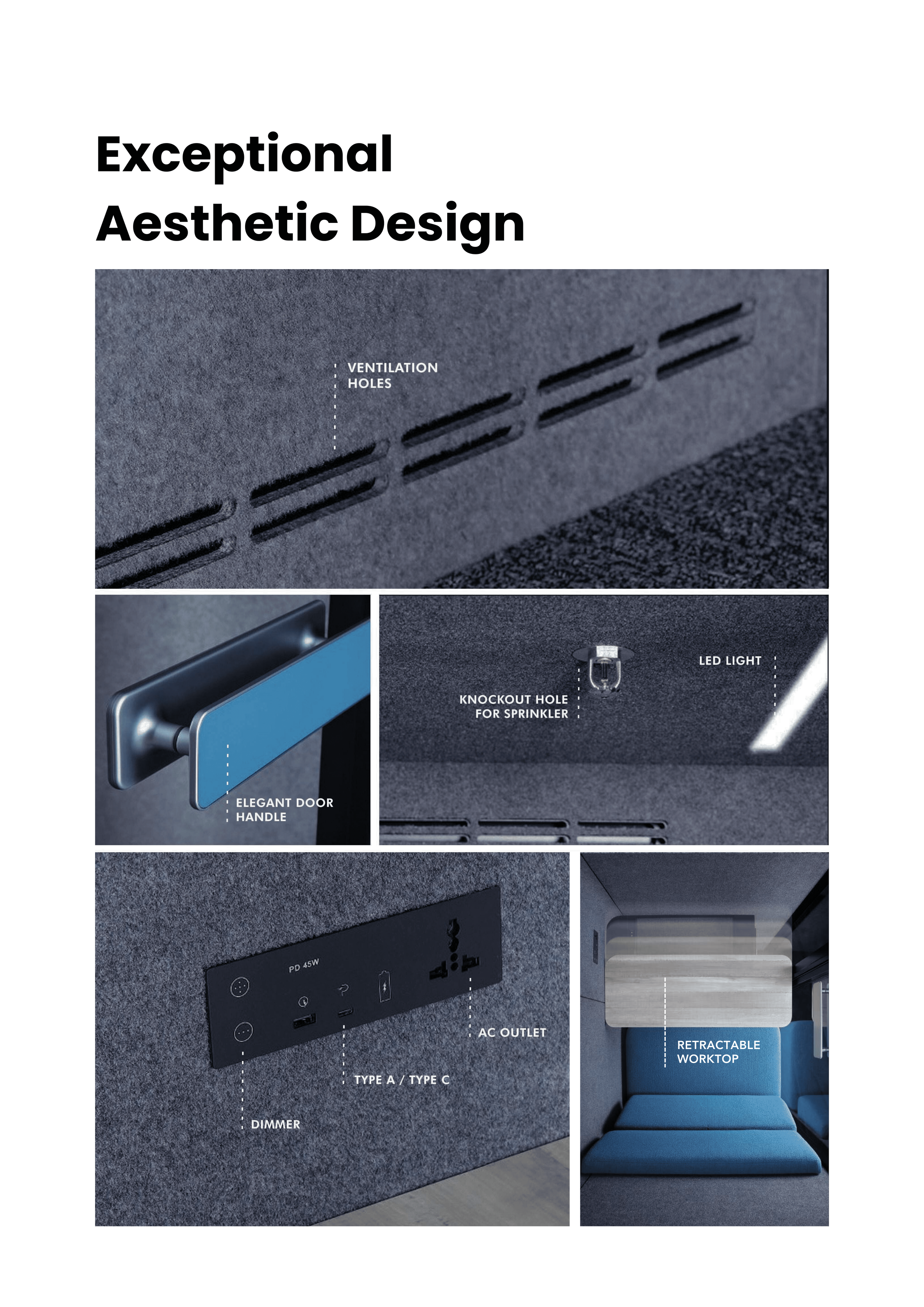 The design's excellence is marked by its innovative and aesthetic qualities, seamlessly integrating with the environment. It has been crafted to be functional, offering ample space and equipped with essential amenities and lighting suitable for both work and meetings.